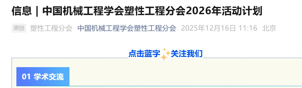 会议已上线中国机械工程学会塑性工程分会官方公众号 |