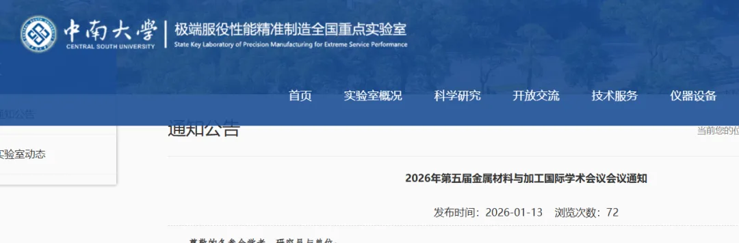 会议已上线中南大学 极端服役性能精准制造全国重点实验室官网 |