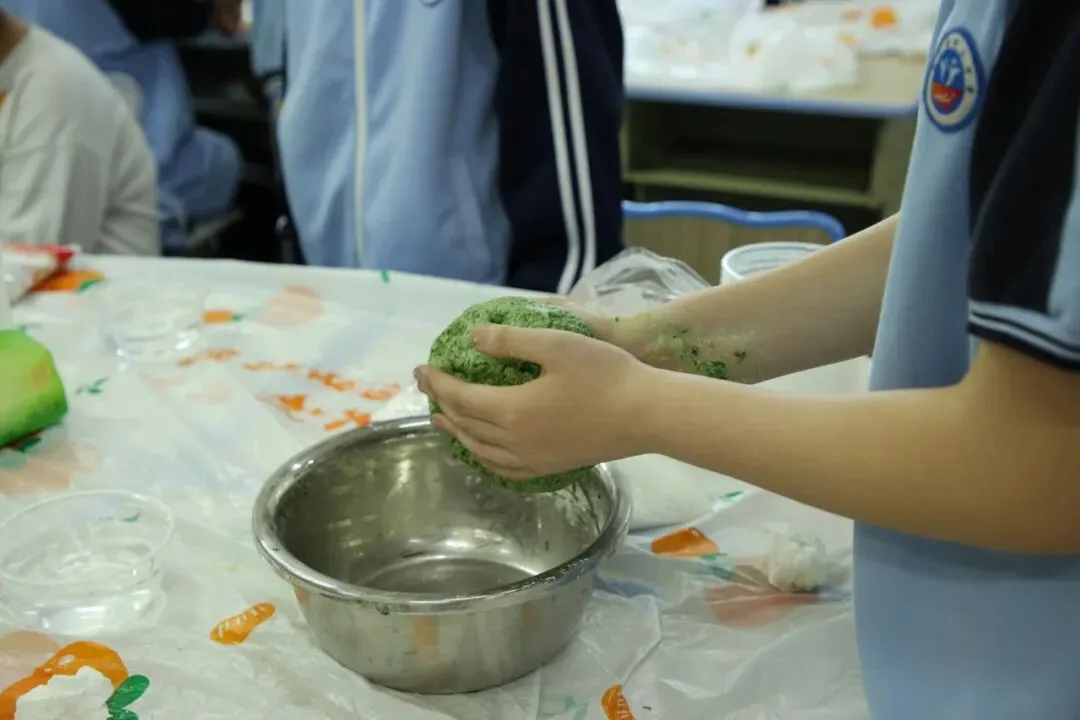 本周四,第一次融合教育课如期开课,万飞映老师带着同学们走进春日里,亲手采摘鲜嫩青蒿,制作传统美味蒿子粑粑。课堂没有局限在教室,而是在自然中展开,大家围在一起,认真分辨青蒿与野草,指尖沾满清新的草香。洗净、焯水、揉面、包馅,每一步都充满乐趣。软糯的米粉裹着青蒿的清香,再包入香甜的豆沙,一个个圆润可爱的粑粑在手中成型。蒸好的蒿子粑粑热气腾腾,青绿温润,香气扑鼻。大家品尝着自己亲手做的美味,脸上洋溢着满足的笑容。这堂融合教育课,不仅让同学们感受了春日生机,体验了传统美食制作,更在协作与分享中收获了温暖与成长。