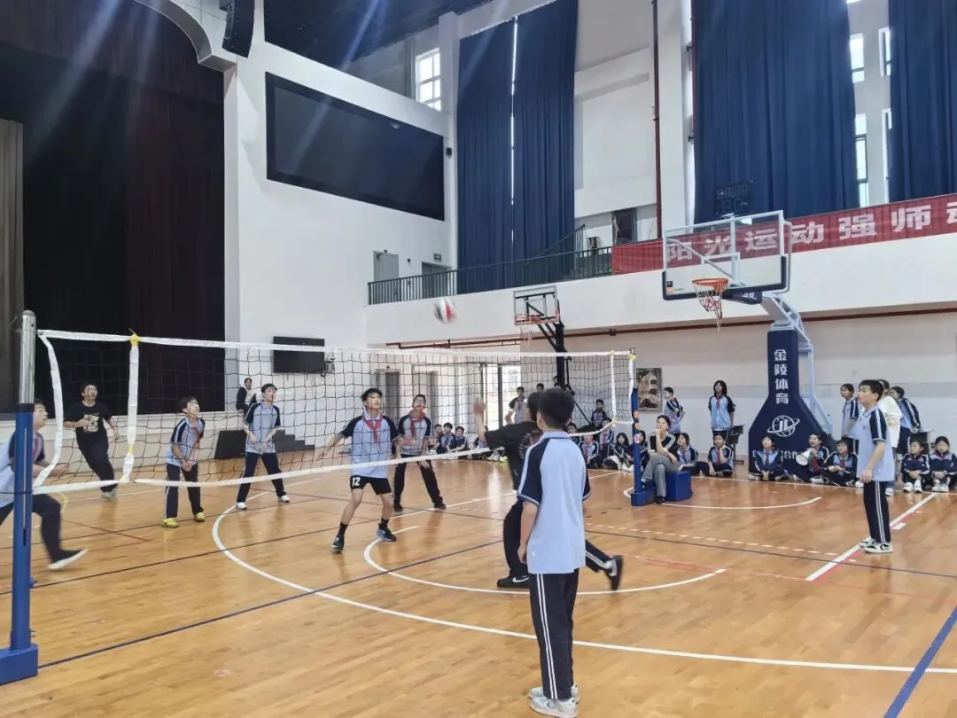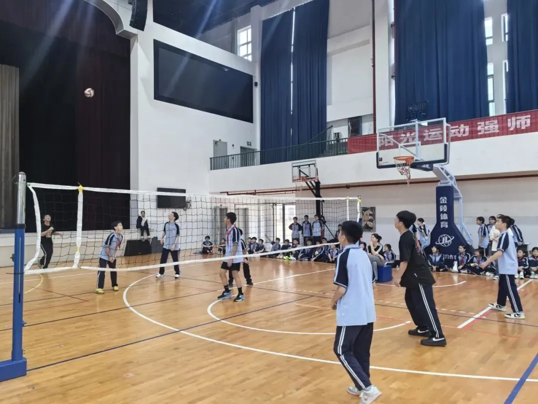 本周五,七年级班级排球赛圆满收官。赛场上,各班队员身姿矫健,发球有力、垫球稳健、扣杀凌厉,每一次配合都尽显默契。观众席加油声、欢呼声此起彼伏,青春活力洒满赛场。队员们全力以赴、顽强拼搏,用汗水书写热爱,在竞技中凝聚班级力量。