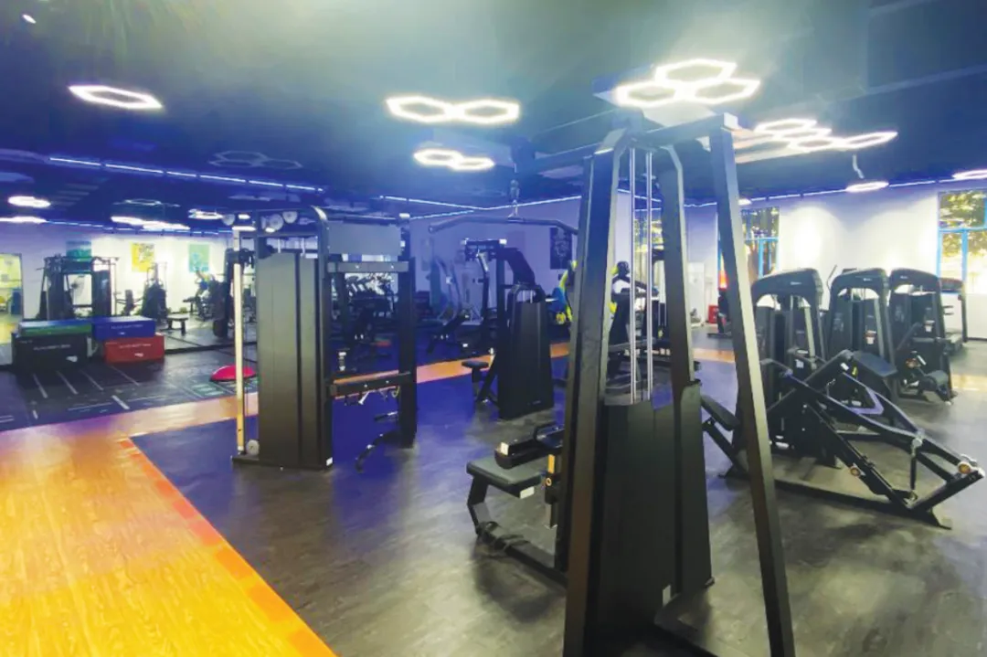 高规格健身房:蝴蝶机、史密斯杠铃、龙门架、椭圆机、跑步机等各类器械设施齐备