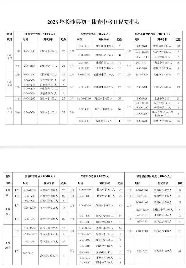 长沙县体育中考时间地点