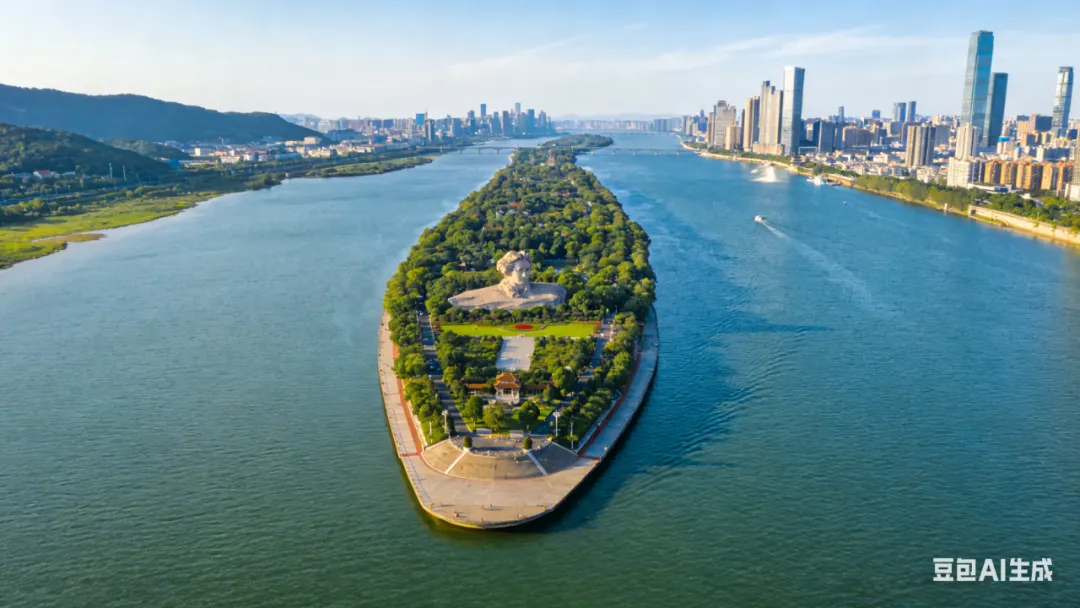 橘子洲则是湘江之上的一颗璀璨明珠,西望岳麓山,东临长沙城,四面环水,绵延数十里,素有“中国第一洲”的美誉。洲上绿树成荫,繁花似锦,江风拂面,清爽宜人。青年毛泽东艺术雕塑巍然矗立在洲头,目光坚定,眺望湘江,尽显“恰同学少年,风华正茂”的豪迈气概,成为长沙的城市地标。