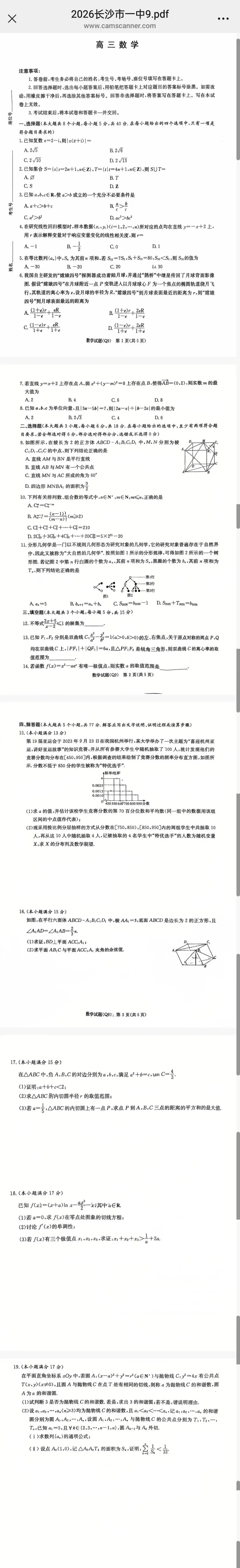 >2026届长沙一中高三月考(九)(数学)