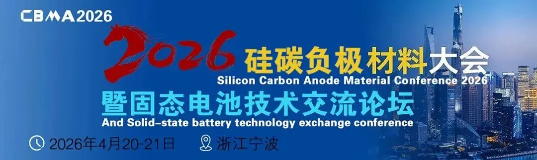 电池工业网和电池材料网将于2026年4月20-21日在宁波市联合举办“2026硅碳负极材料大会暨固态电池技术交流论坛”,预计规模:400+,大会主题:聚焦硅基负极突破·擘画固态电池新篇。(注:免费人员只收取600元餐费,可开具发票)时间:2026年4月20-21日(19日报到)