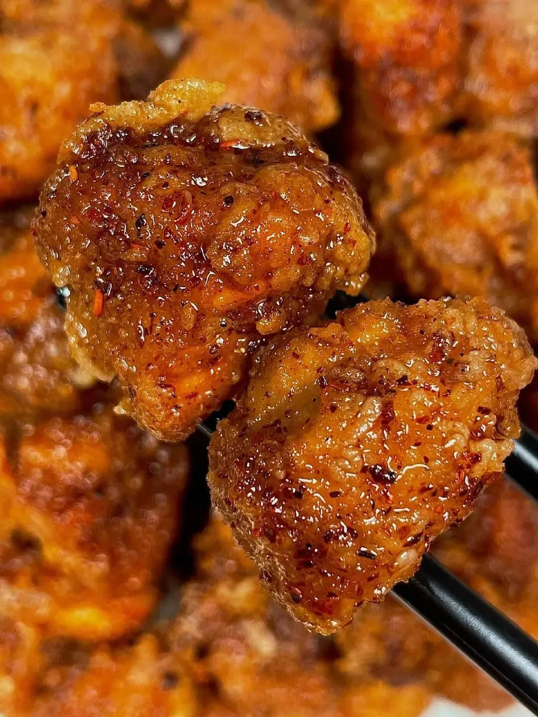 温馨TIPS 哦对了你们要是喜欢吃蒜香的可以再腌肉的时候加蒜末,真的超级香,虽然我是广东人但我真的超爱这种带点辣的小吃,平时追剧的时候抱着一盘炫,爽到不行,对了裹粉的时候可以反复抓8--10次,让粉牢牢粘在肉上,炸的时候不会掉,盐别加太多啊,我第一次腌的时候加了两大勺盐,咸的我喝了三杯水,哦还有你们要是没有鸡胸肉用鸡腿肉也行,更嫩,就是要剔骨麻烦点,哦对了炸的时候可以放一点点白芝麻在粉里,香到邻居都来敲门问我在做什么真的真的超级好吃,你们一定要试试!