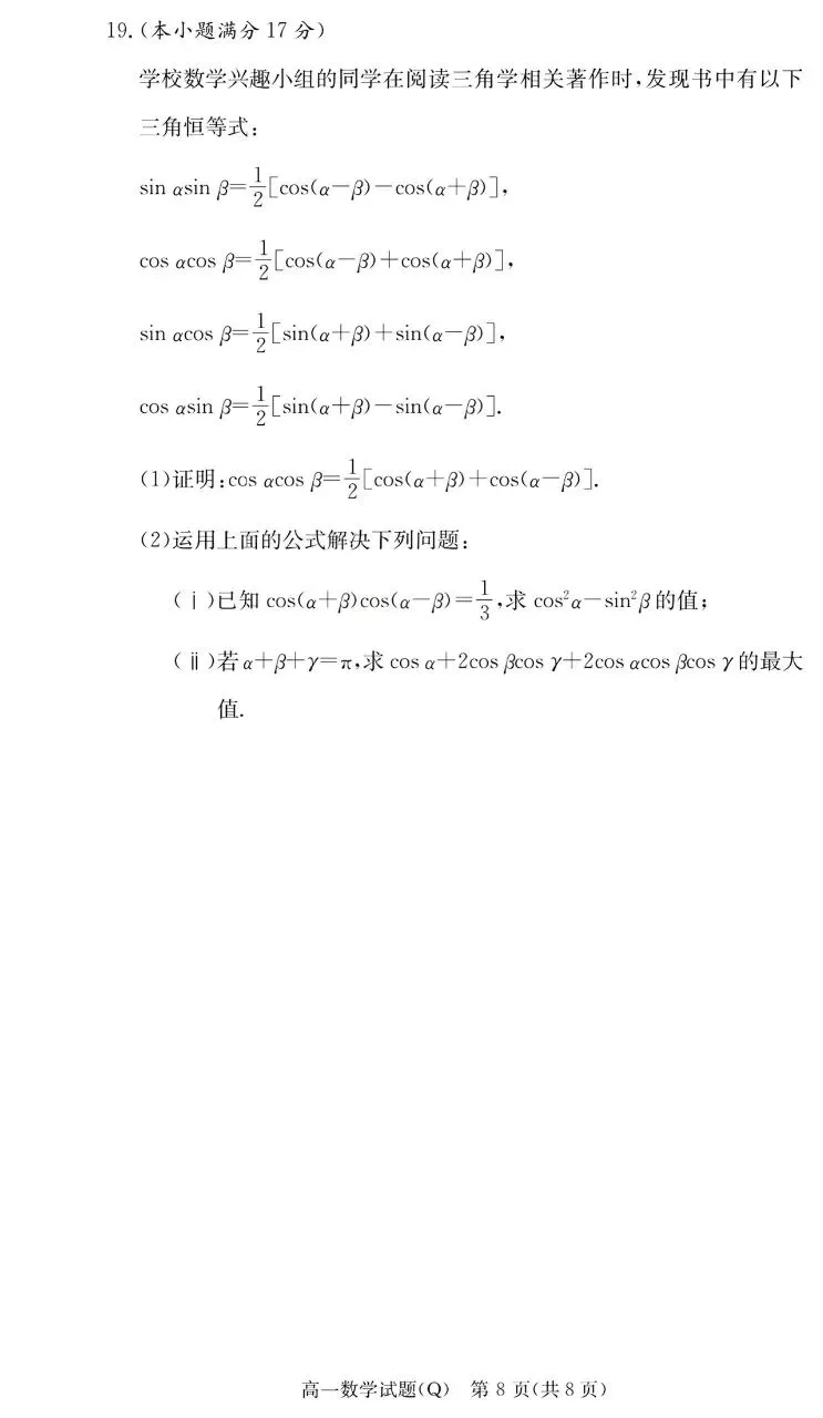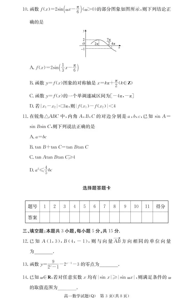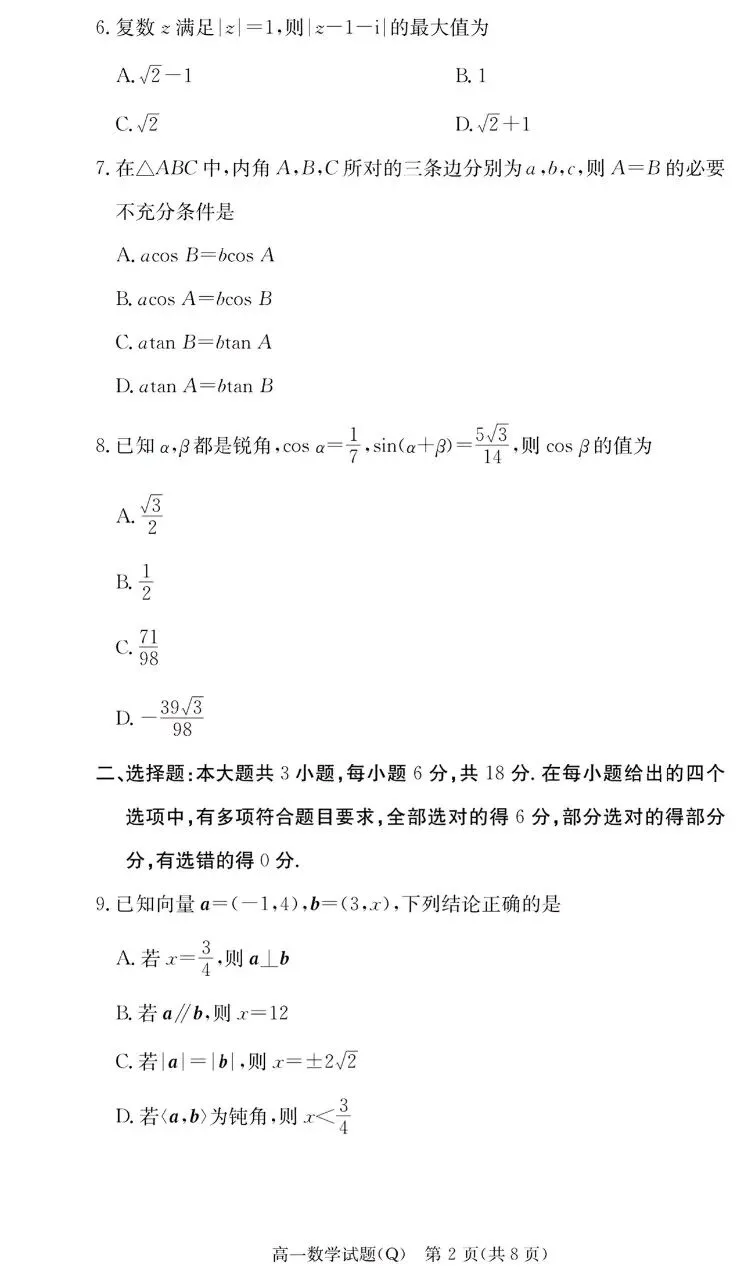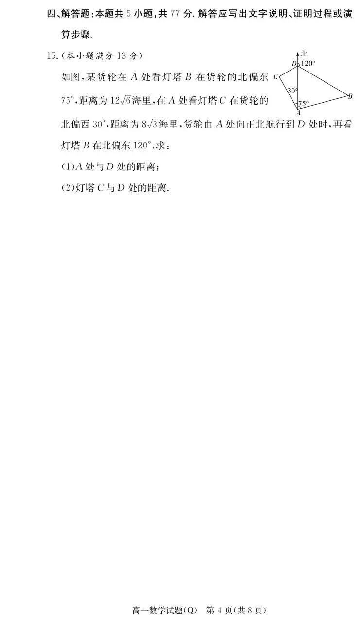 >长沙市一中2026年上学期高一4月阶段检测数学试题及答案