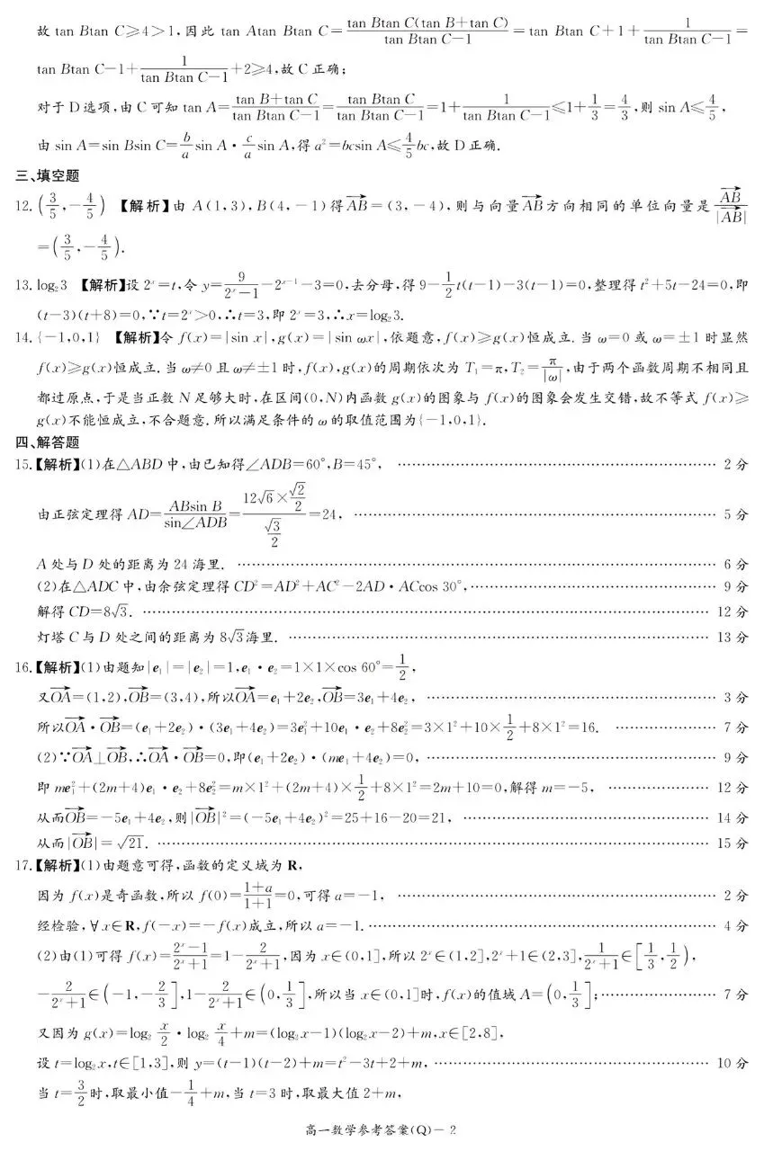 【湖南省长沙市雅礼集团八校联考2024-2025学年高一下学期4月期中数学试题(解析版)