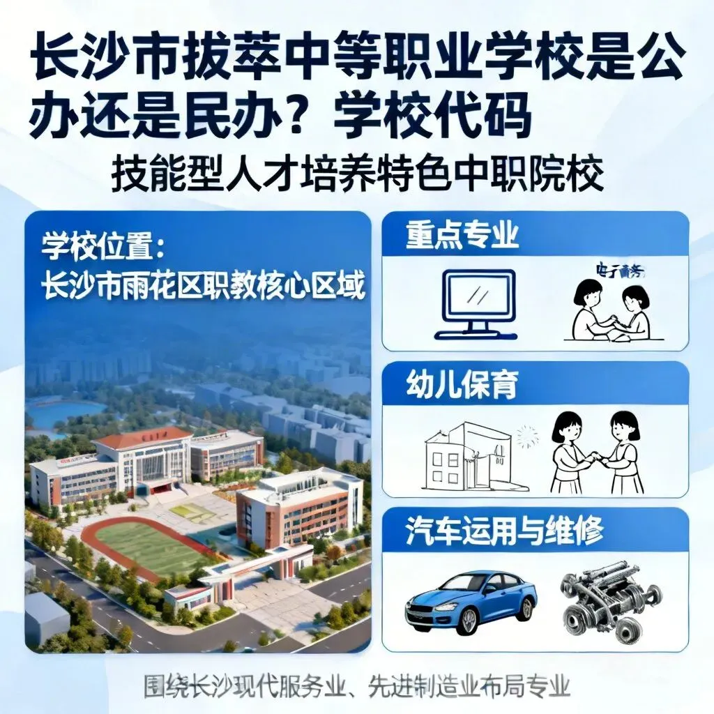 办学性质决定了学校的资源调配逻辑,学校代码则是考生踏入技能成长之路的“准入密钥”,长沙市拔萃中等职业学校以民办院校的灵活办学优势和规范的官方身份标识,为有志于掌握一技之长的学生提供了稳定且具特色的成长平台。