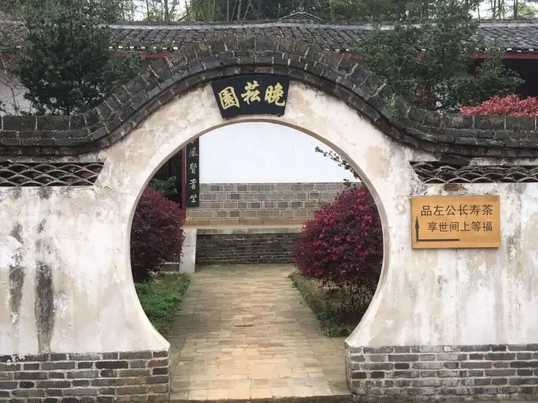 典藏阁门前挂着的牌子上对柳庄进行了介绍;1843年,左宗棠用教书所得积蓄约九百两白银在柳家冲置田70亩,并亲自设计建造了一座占地4亩多、有48间房屋的砖木住宅,因挚爱柳树不折性格,起名“柳庄”。从建成入住到1857年迁居长沙,左宗棠在柳庄居住14年。