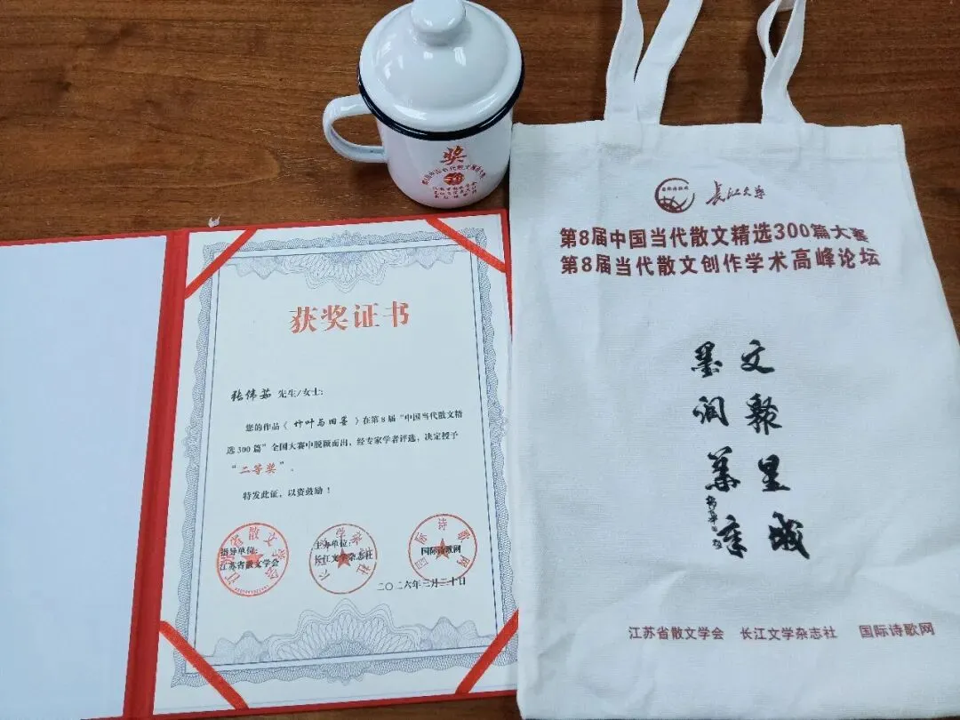 雨丝细密地打在书房的玻璃窗上,顺着玻璃往下淌,把窗外那丛竹子洗得发亮。我坐在书桌前,手机里是一条消息:第八届中国当代散文精选大赛颁奖典礼在长沙举行,《竹叶与旧墨》获得了二等奖。