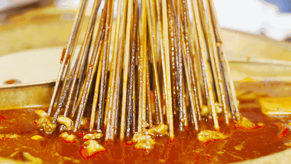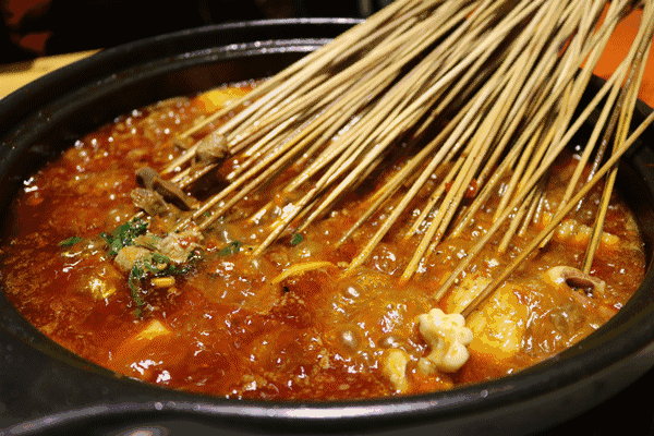 串串好吃的第一秘诀在于锅底。麻椒,香叶,小茴香等调料份量十足的四川地道辣汤锅底。红与黑的色泽搭配给人一种视觉冲力,莫名的刺激人们的味蕾,不由自主的先咽下了悄悄涌出的口水。