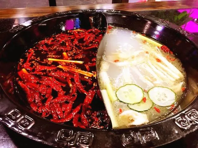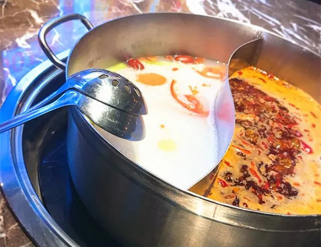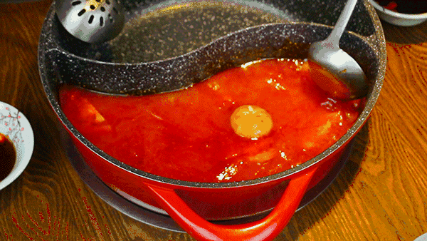 鸳鸯锅照顾了不能吃辣的弱势群体,串界江湖约定俗成的规矩:白汤涮菜,红汤涮肉。