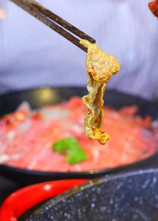 所以绝对少不了火锅里的人气选手“嫩牛肉”!在红汤里涮烫30-35秒即可食用,肉香和辣椒香齐齐炸开,搭配干碟爽到飞起!