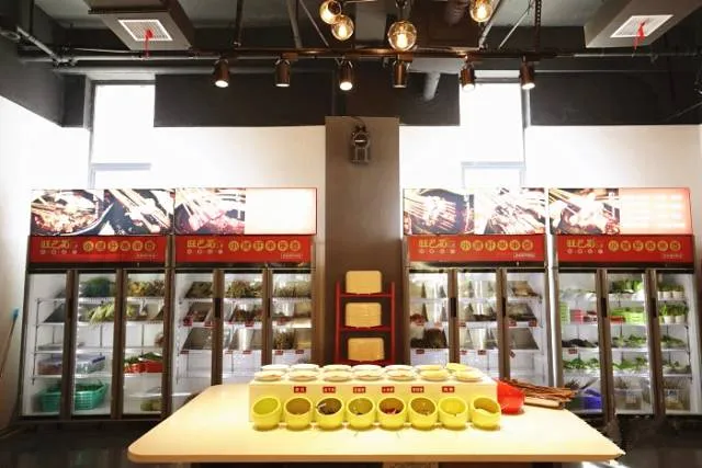 六层高的冰柜里摆得满满当当:麻辣牛肉、香菜牛肉、小郡肝...食材又多又新鲜,每一串都是由后厨阿姨现串现卖。