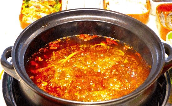 牛油锅底油厚汤鲜,浓郁芳香。牛油、辣椒、花椒等数十种香料先爆炒后细细熬制而成。最振奋人心的是,牛油锅底是绝对吃不胖的!堪称火锅中的超正能量!