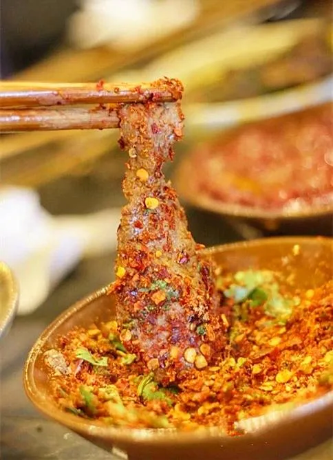 平均一年卖出2000万串招牌菜—“泡椒牛肉”!这是要用抢的...牛肉不经过任何的腌制,但是包裹着独家秘制的泡椒,是产自云南的小红椒。
