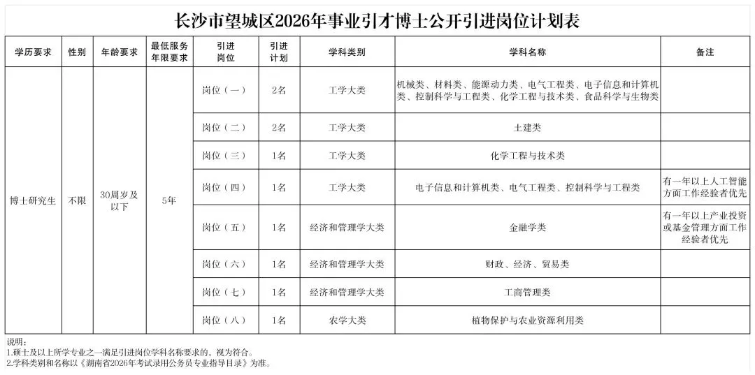 招聘 | 长沙市望城区 | 2026年面向全国公开引进事业引才博士