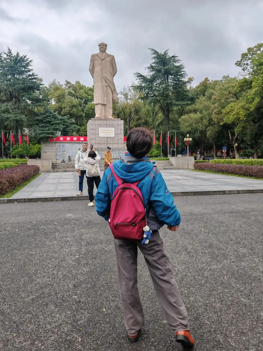 在博物馆附近解决了午饭,返回酒店休息,下午3点乘车来到了岳麓山!在东方红广场毛泽东雕像下打卡拍照,路过岳麓书院,来到了爱晚亭!这里游人如织,纷纷在此打卡拍照!下午不下雨了,但是还阴着天,在蒙蒙的雾气下,红色的爱晚亭,配上毛泽东书写的爱晚亭牌匾,爱晚亭显得格外秀美!