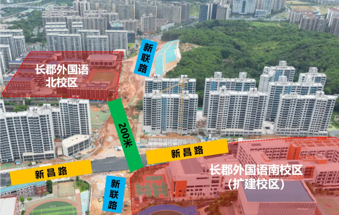 而200米的距离,是目前长沙初中当中新老校区距离最近的,有利于师资双向流通、任教。
