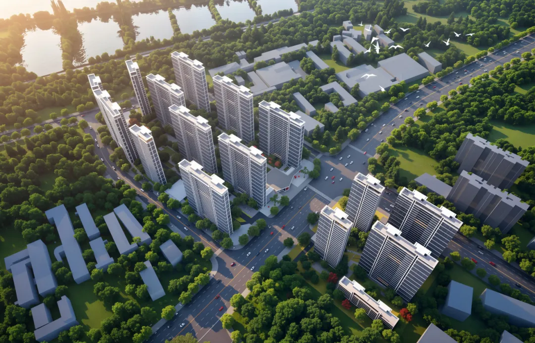 全盘分东西两个组团开发,共16栋纯板楼住宅,采用科学的楼栋布局,全公建化立面设计,搭配超大窗墙比,统一封窗交付,颜值超高。