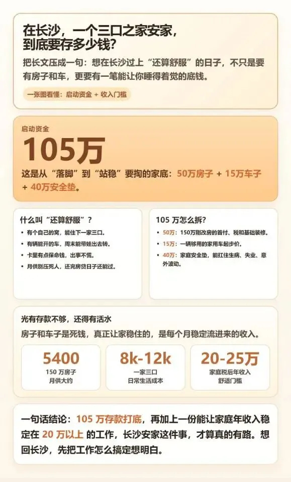 没错,105万。这是你举家迁回长沙,想体面站住脚,兜里至少要有的数。