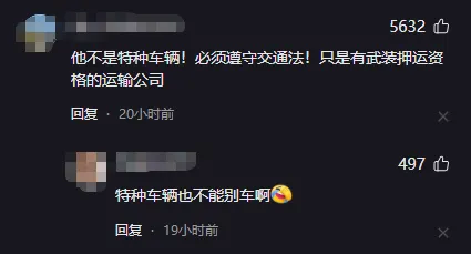 对此,有网友表示:“他不是特种车辆,必须遵守交通法!”也有网友说:“特种车辆也不能别车”。