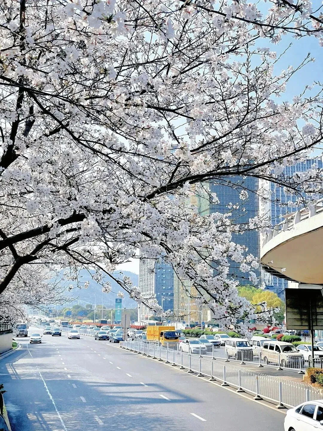 📸拍照tips:仰头拍摄花瓣飘落瞬间,或以樱花为前景捕捉地铁车流穿梭的动态画面;下午4-6点的光线最温柔。