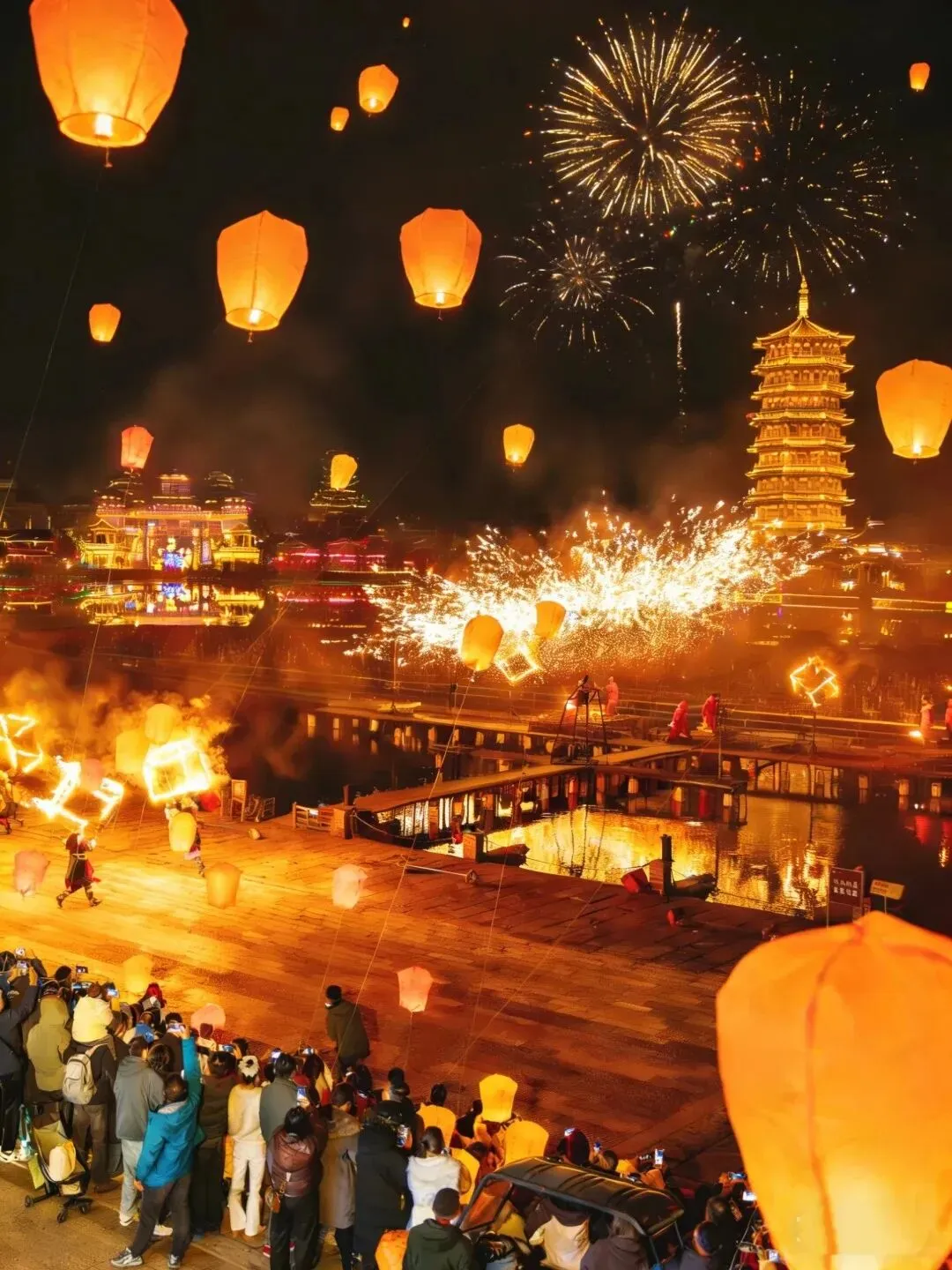 📸拍照tips:建议穿汉服前往,古建与花海是绝佳拍摄背景;夜间的无人机表演和焰火不可错过!