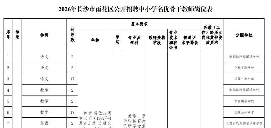 2026年湖南长沙市雨花区公开招聘中小学名优骨干教师公告