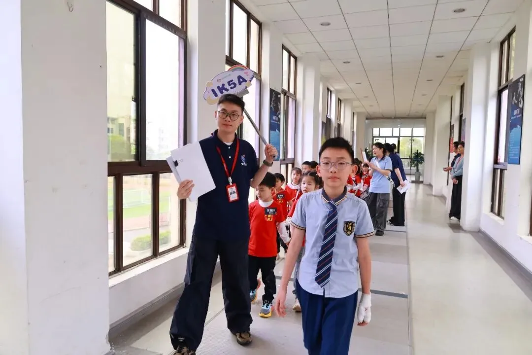 在哥哥姐姐的带领下,走遍教学楼、双语阅读角、音乐教室、体育馆,一边打卡,一边认真发现幼儿园和小学的奇妙不同,边走边看、边玩边发现,眼睛里全是闪闪发光的期待。