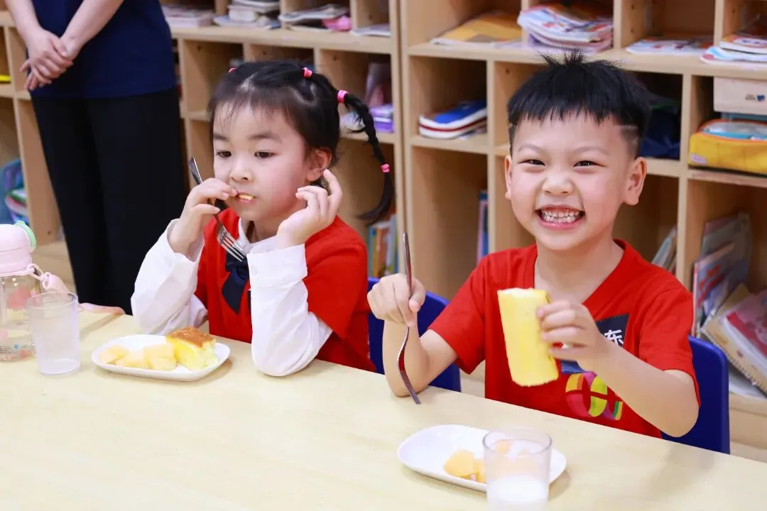 探索结束后,宝贝们迎来了轻松的点心时间,小小的休息环节里,孩子们学着有序取餐、轻声交流,悄悄适应着小学的生活节奏。