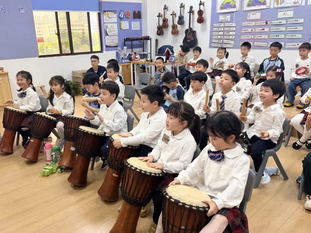 从拍手律动、节奏游戏入手,带领孩子们建立节拍感知,孩子们亲手体验幼儿专属打击乐器,学习基础演奏方法,在集体合奏、节奏互动里感受音乐魅力,在团队协作中收获快乐,沉浸式艺术体验,每一张小脸蛋都藏不住的开心。