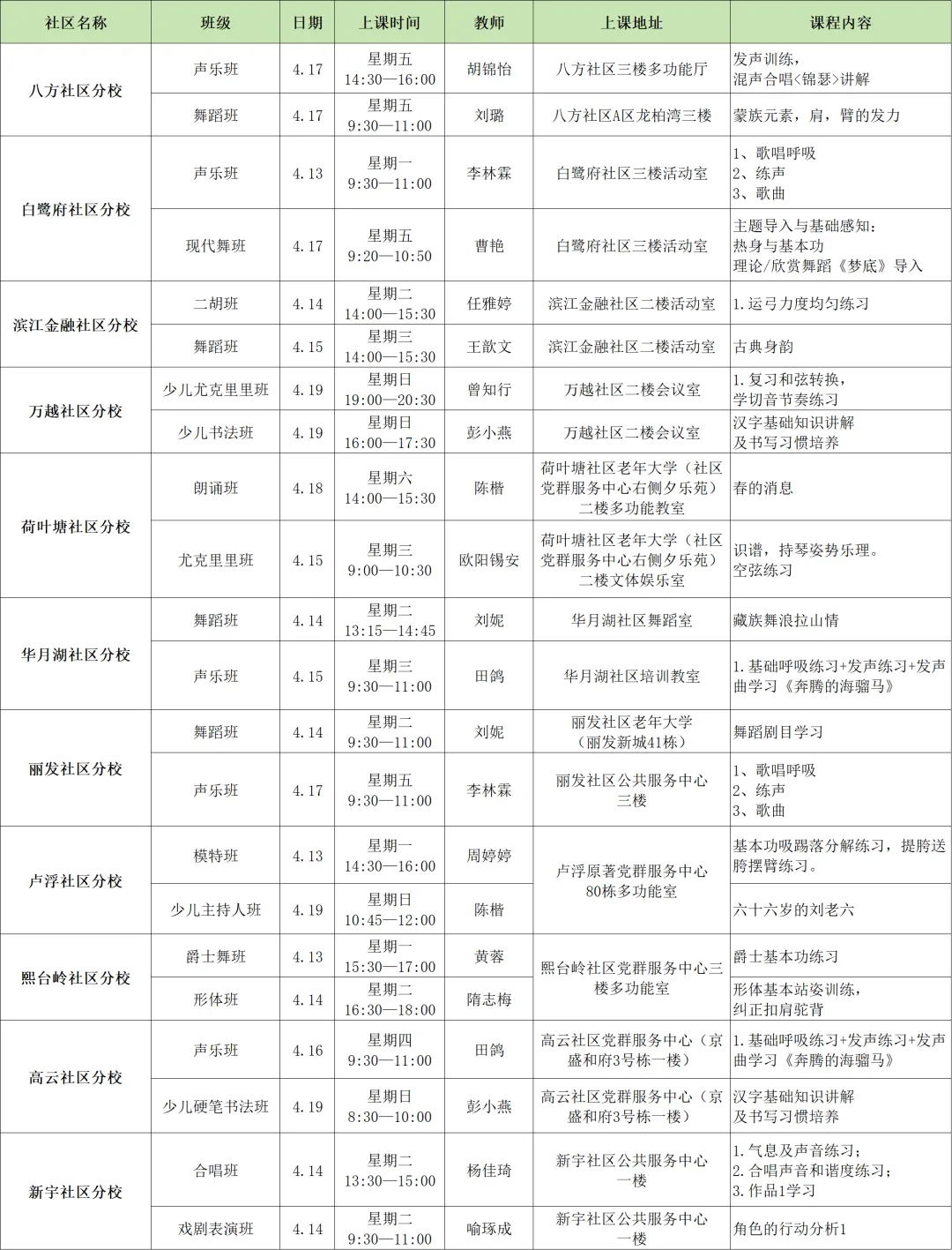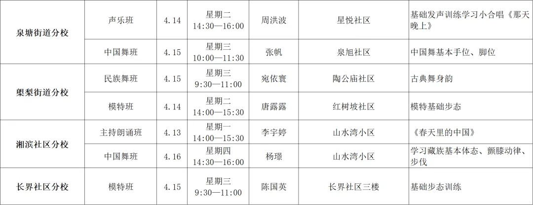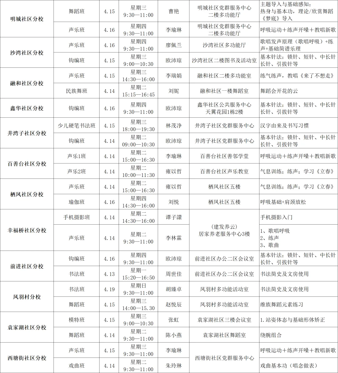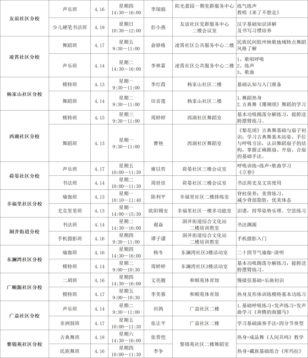 1.服务内容:公益艺术培训是长沙市群众艺术馆打造的培训项目,从2015年起,在全市街道、社区布局社区分校,迄今已经有50余所分校加入这一阵营,让公益艺术培训规模更大、课程更多、受众更广,时间上更便民。