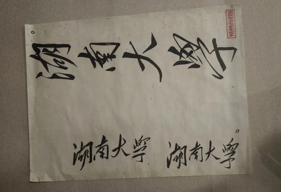 在教员雕像左侧,湖南大学牌楼前聚集了许多游客打卡。“湖南大学”四个字由教员亲笔题写。为写好这四个字,教员反复斟酌,最后向时任校长李达提供了三组字。
