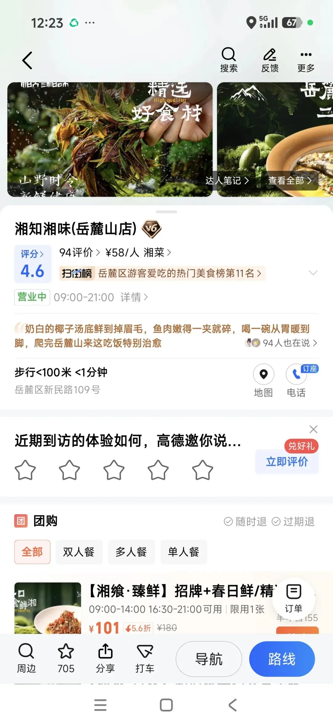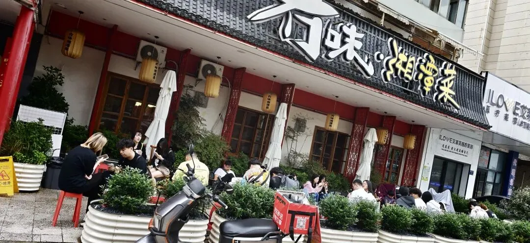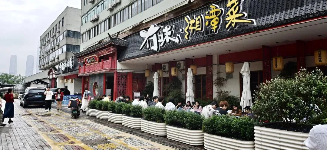 午餐吃什么呢?我选择了高德地图推荐的橘子洲大桥西口的“没味-湘潭菜”。走到跟前,我有些傻眼,大门口排队几十人。问询服务员,得知已经排到50桌以后了。