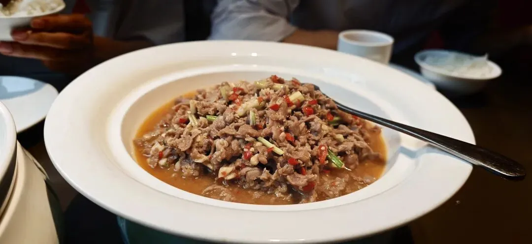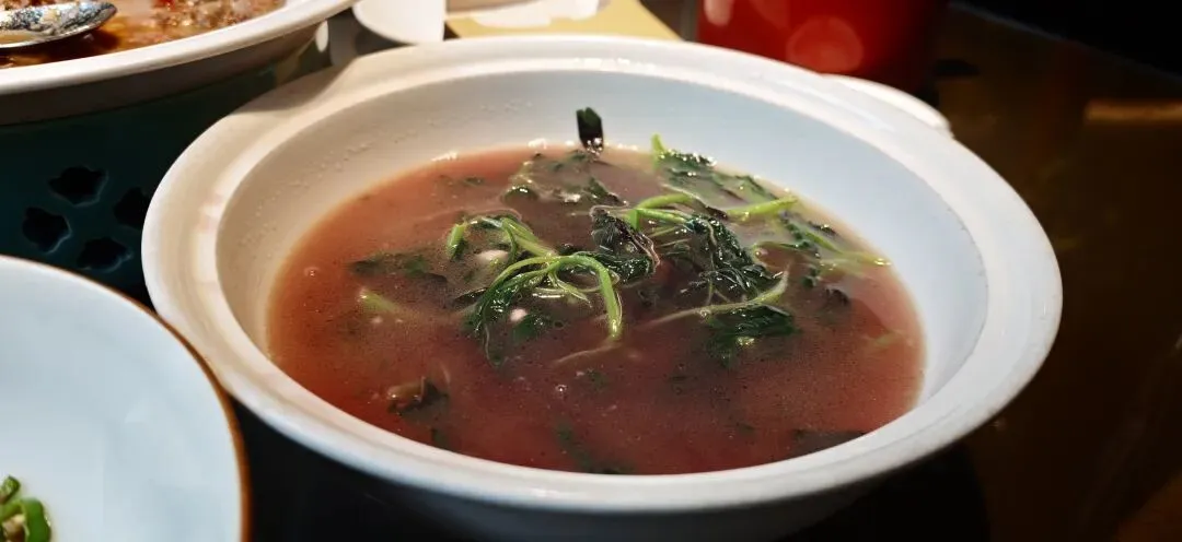 我们点了四道菜:炒鳝鱼、小炒吊龙肉、炒香干和红苋菜汤。