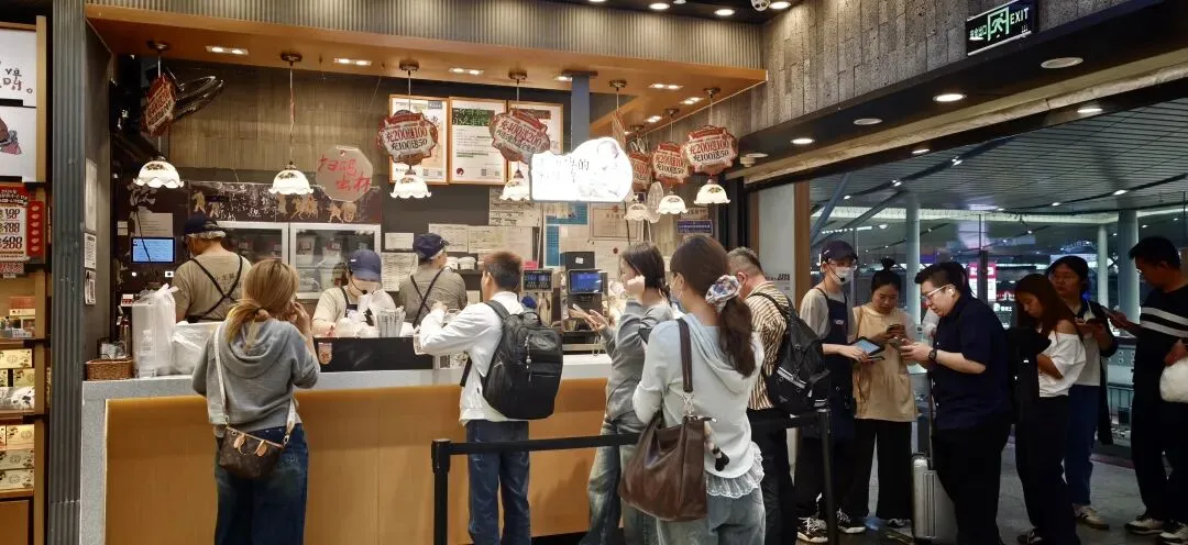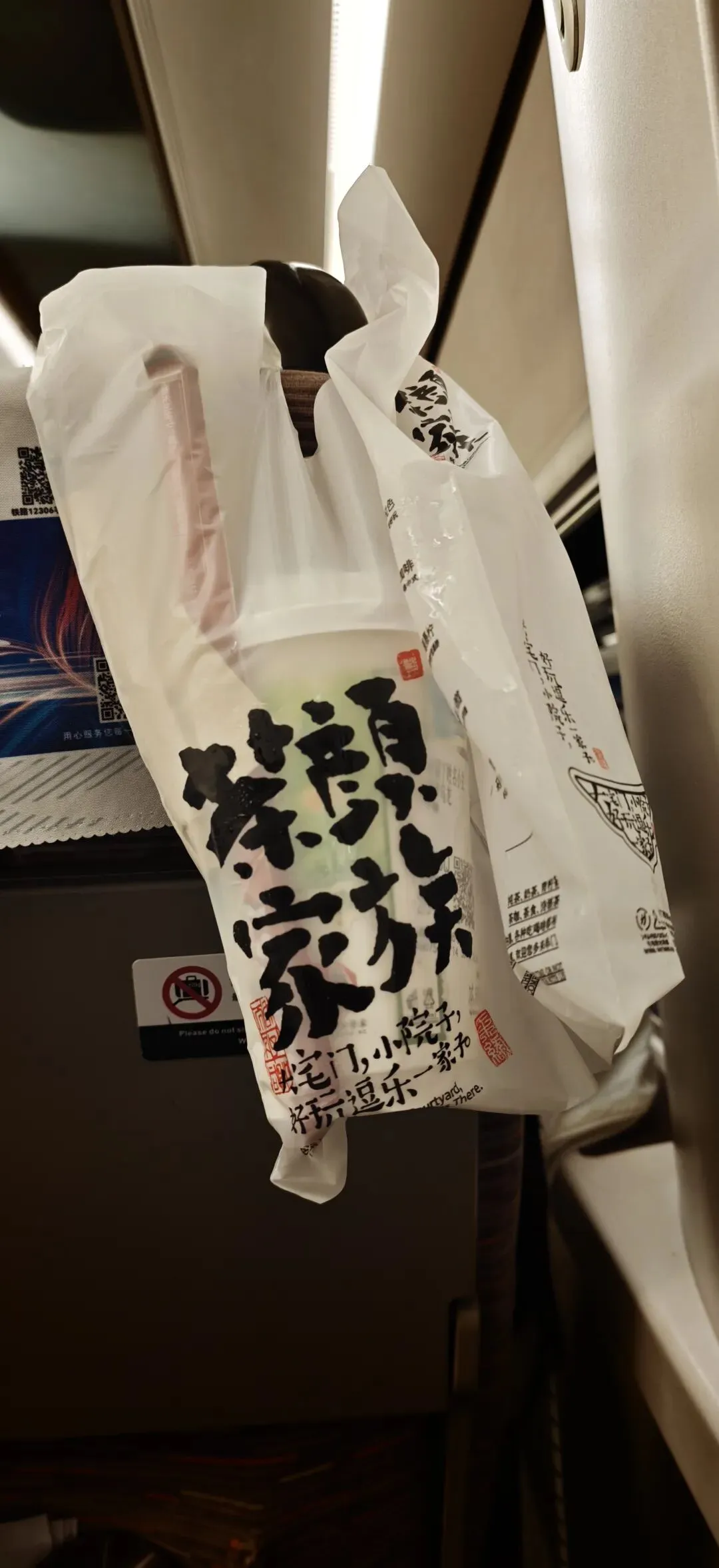 这里旅客多,谁也不会太注意一个中年男人捧着奶茶喝的画面是否违和,哈哈。