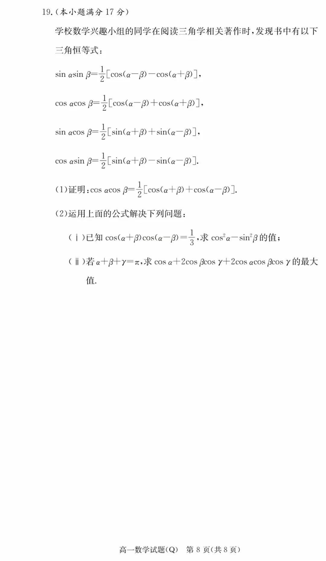 等差数列+三角函数对称性——衡水中学2024届高三上一调T8