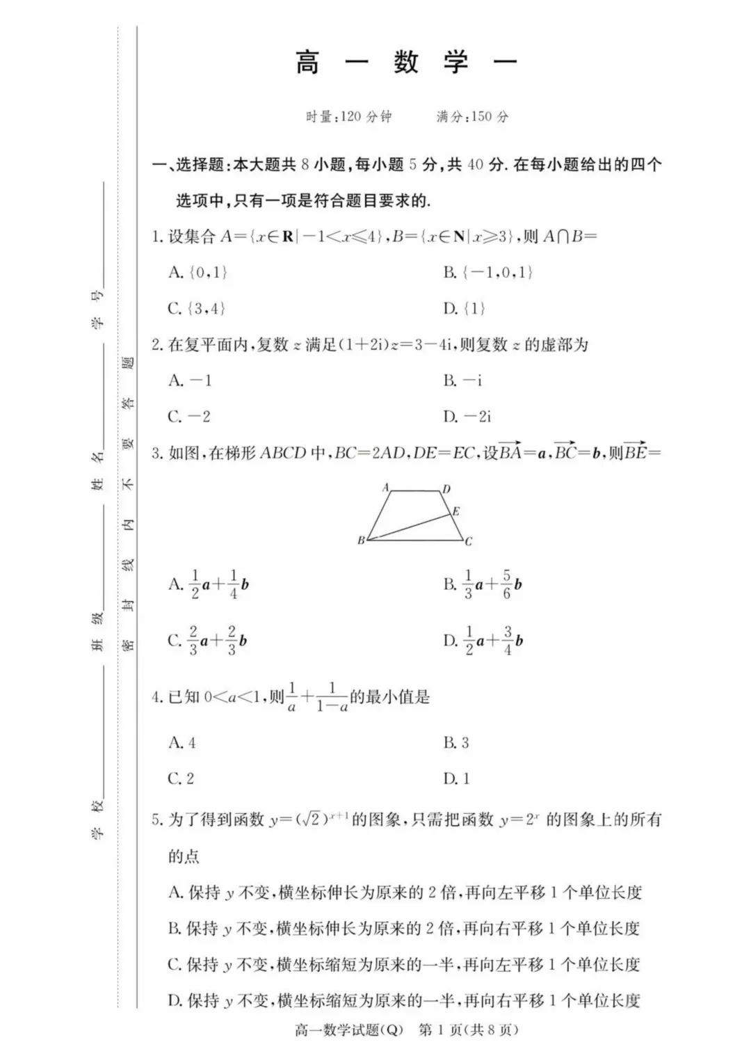 作者寄语:湖南长沙一中2025-2026学年高一下学期4月阶段测数学试题+答案,7天有效领取,手慢无!!!