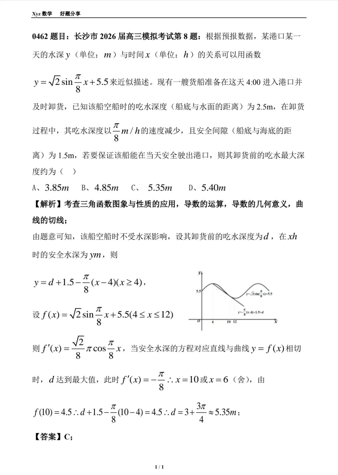【解析】考查三角函数图象与性质的应用,导数的运算,导数的几何意义,曲