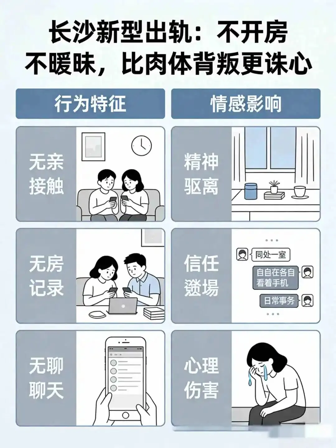 上周在长沙梅溪湖的一家清吧,35岁的老陈喝多了,对几个老同学说起一件事,他老婆现在跟一个运动搭子每天发几十条消息,不是约着吃饭,也不是一起逛街,只是随手拍个落日、路边的一只猫、或者自己煮的面,这些内容老陈十年都没收到过,他说人虽然没碰,但心已经搬走了。