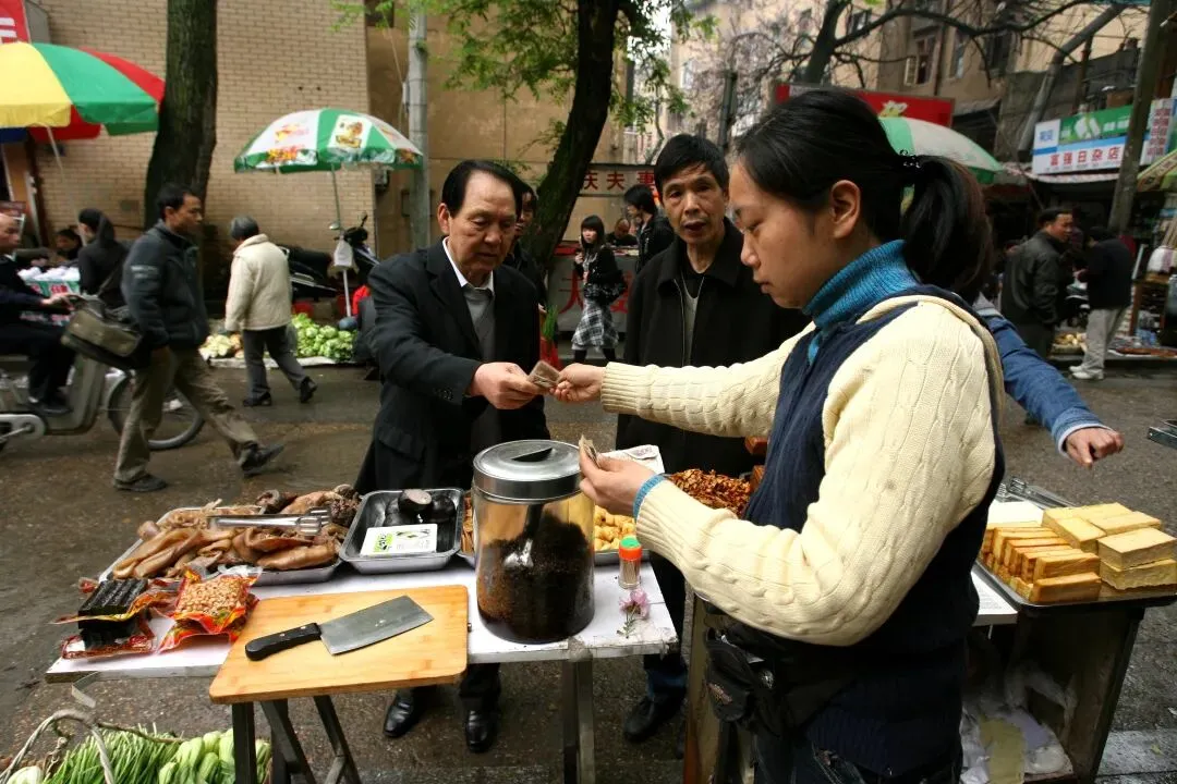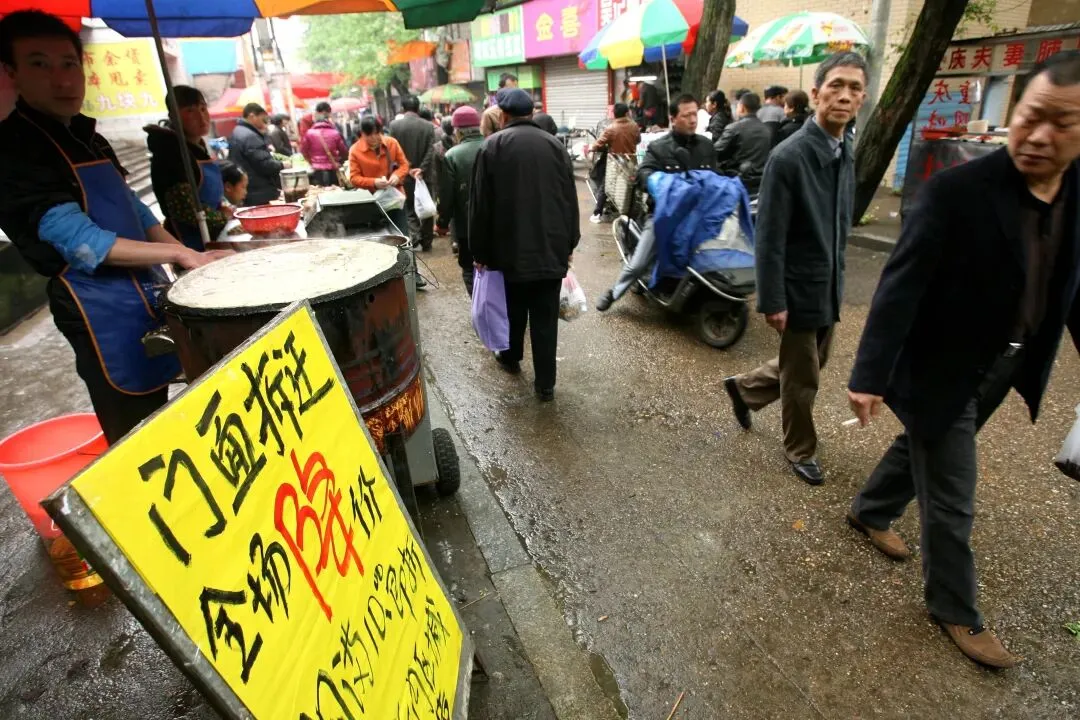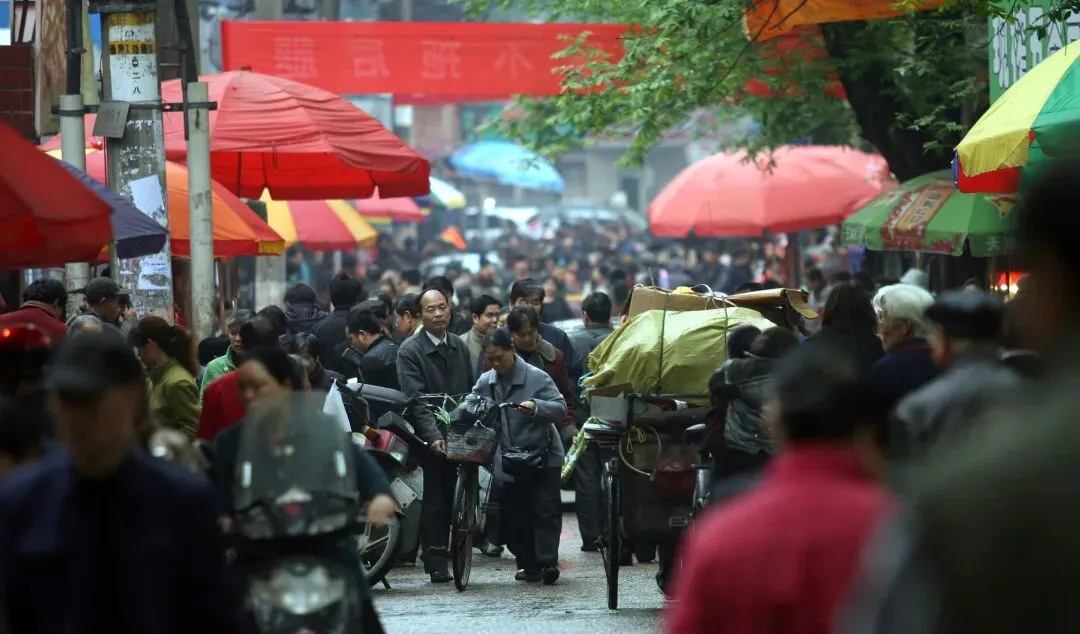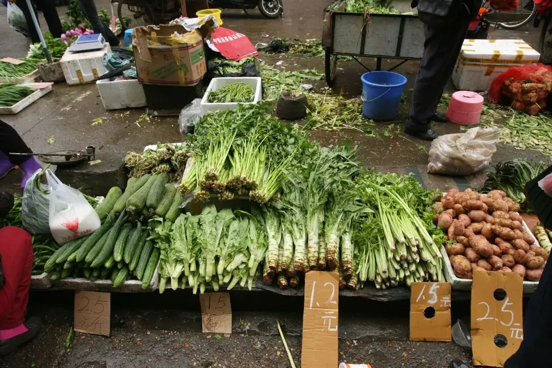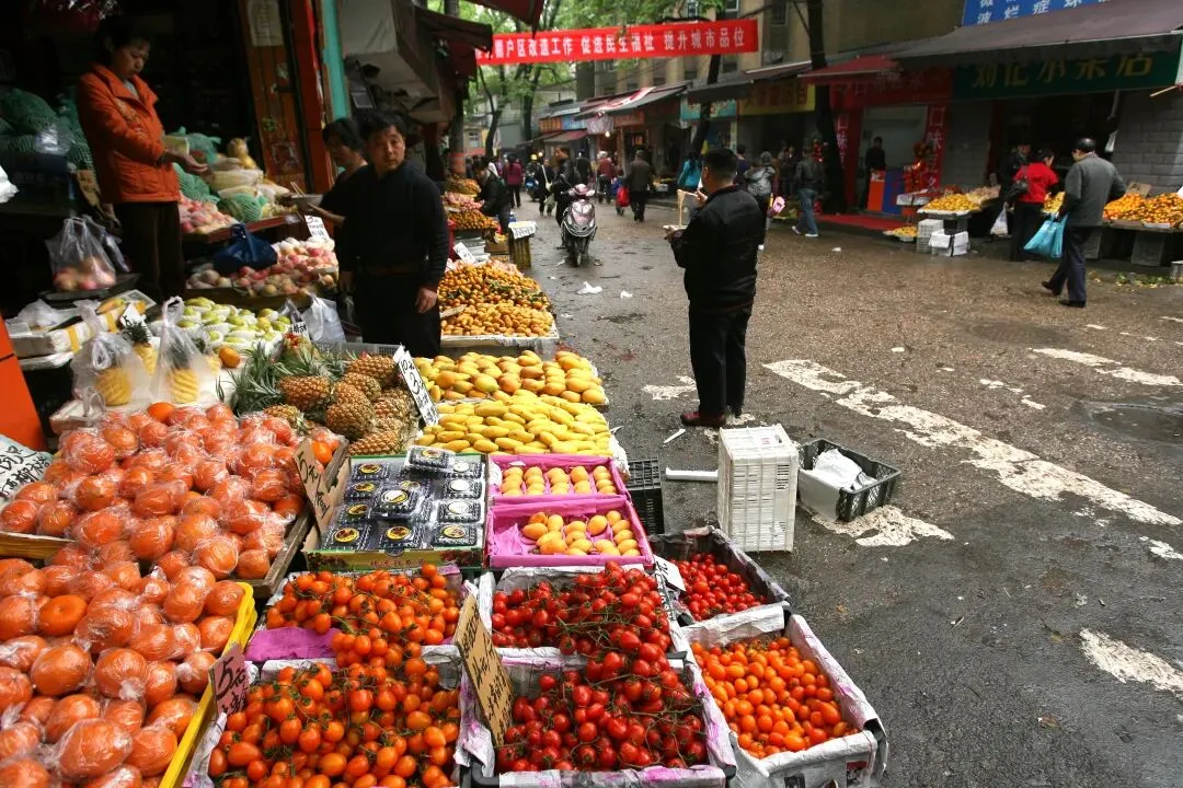 2010年3月31日,长沙岳麓区溁湾农贸市场外,摆满了菜摊子,把溁湾路小学的门也堵住了,虽然秩序杂乱无章,但烟火气浓厚。