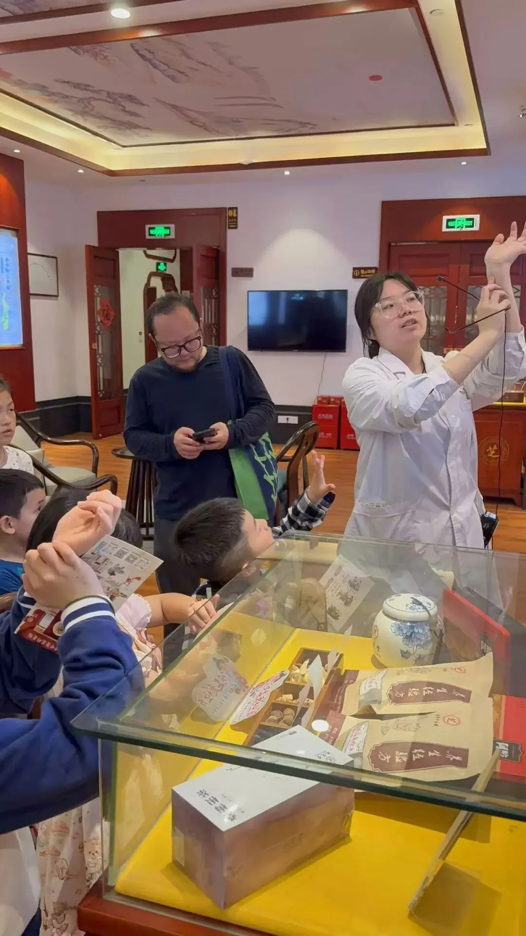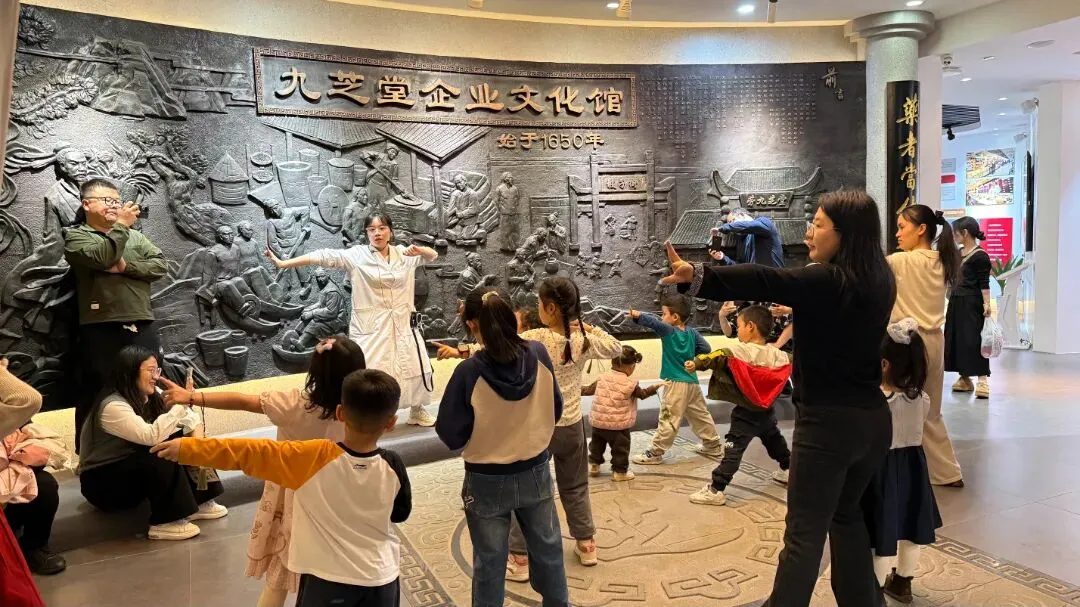 准时抵达九芝堂中医馆一楼,工作人员热情引导,流程安排清晰。首先带我们认识各类中医药文创饰品,药香与设计感结合,孩子一眼就被吸引。