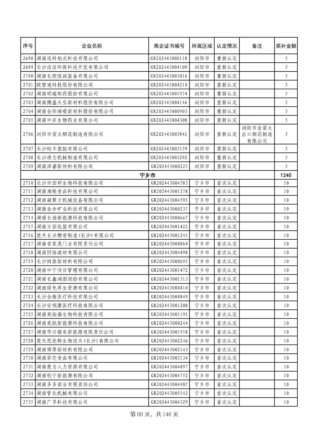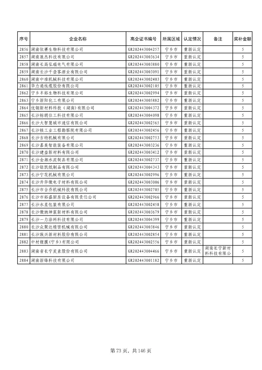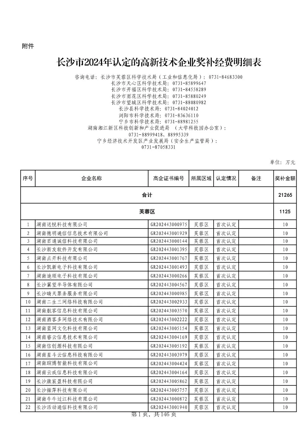 2025年1月12日,长沙市科学技术局发布《长沙市2024年认定的高新技术企业奖补经费明细表》,2884家企业共获奖补资金2.1265亿元。