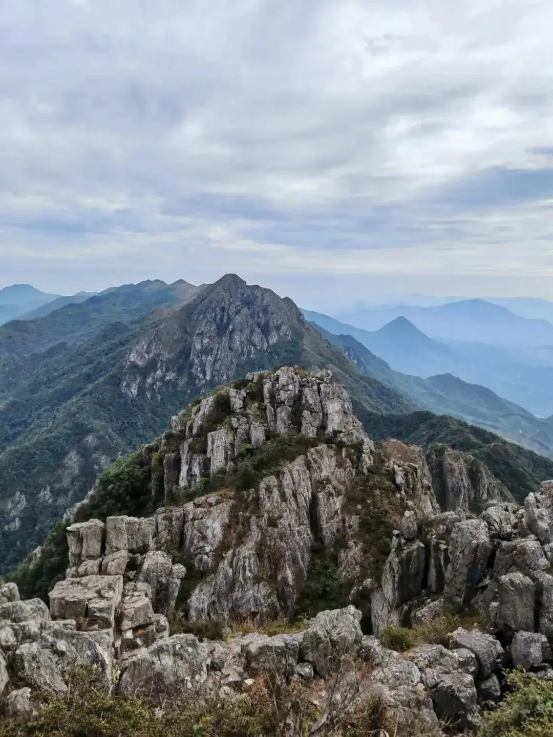龙斗峰(韶关始兴): 广东顶级山脊徒步线,主峰海拔1368米,由龙尾、龙中、龙头三段组成,刀锋山脊最窄处仅半米,两侧悬崖深邃,裸岩攀爬、奇石林立,兼具刺激与壮观。全程约12-14km,累计爬升约1400米,视野开阔,云海概率高,是户外人必打卡的“广东K2”。