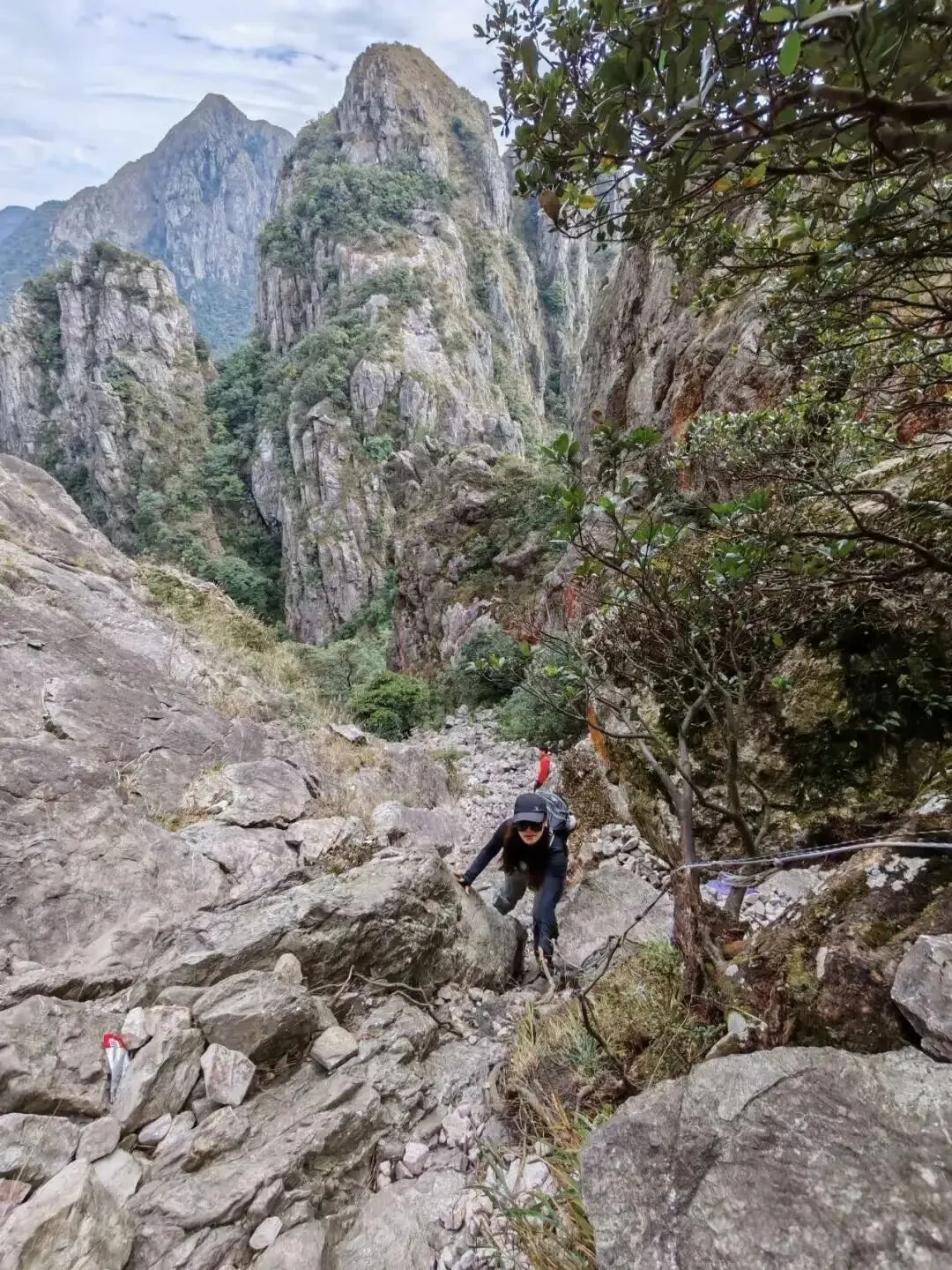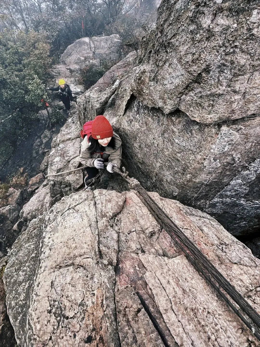 - 龙尾攀爬段:坡度极陡(约60–70°),部分需徒手抓岩,路面湿滑易摔,必须穿专业防滑登山鞋、戴手套