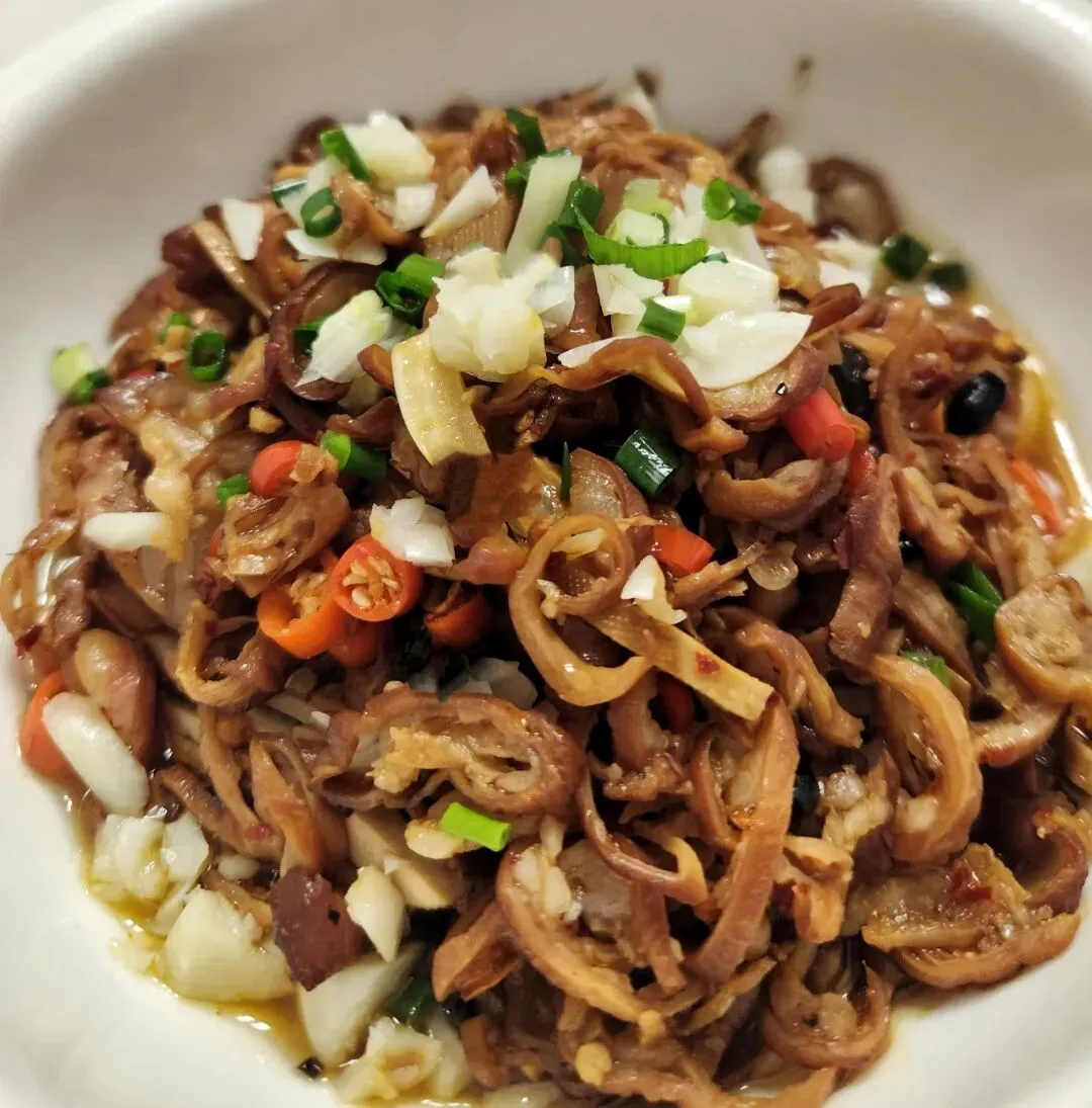 香干蒸腊肠,腊肠干净无异味,烟熏的腊肠香配上大蒜辣椒豆豉的加持,更加好吃下饭,香干丝也切得细,充分吸收了腊肠的香味,很不错。