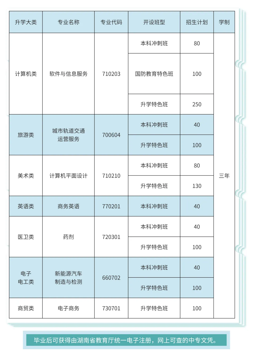 长沙华中涉外职业高中是经湖南省教育厅备案,长沙市教育局批准设立的一所全日制职业高中。学校创办于2005年,历经二十一载春华秋实,硕果累累,文化底蕴积淀深厚。学校坐落于长沙政治、经济、文化三重核心区域、我国中部地区首个国家级新区湘江新区,长沙市委市政府及湘江新区机关均近在咫尺,紧邻长沙高铁西客站、湘江新区综合交通枢纽,交通出行非常便利,地理位置优越。学校地处长沙河西文化教育中心区域,优质教育资源充足,湖南工商大学、长沙医学院等十几所知名高校林立周边,教育文化氛围浓郁。学校教学楼、公寓楼、食堂、田径场、篮球场、羽毛球场、乒乓球场、各专业功能实训室等一应俱全,办学条件非常齐备。学校拥有一支文化底蕴深厚、专业知识扎实、教学技能精湛、爱岗敬业、德艺双馨的教师队伍,为学生实现优质升学或理想就业提供可靠保障。学校高度重视德育特色的打造,三自教育、华中思政优课堂、内务八条线、光盘行动、先锋连等德育特色项目全面铺开,学生思想境界、文明素养、劳动素养不断提升,学校养成教育成果丰硕,成为我校特色发展中一张张闪闪发光的名片。学校教学质量优良,2023、2024年全省公共课普测通过率100%,位列全市第一;近年每年均有数百名优秀学子考入湖南工商大学、湖南工业大学、湖南财政经济学院、湖南科技学院、长沙民政学院等优质本科、专科院校就读,高考升学率高居同类学校前列,学生优质升学成为我校特色发展中最大的特色。