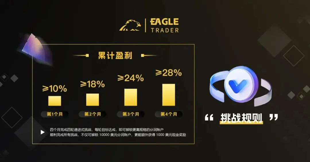 3、成长奖励:顺利完成所有挑战,不仅可解锁 10000 美元分润账户,更能额外获得 1000 美元现金奖励
